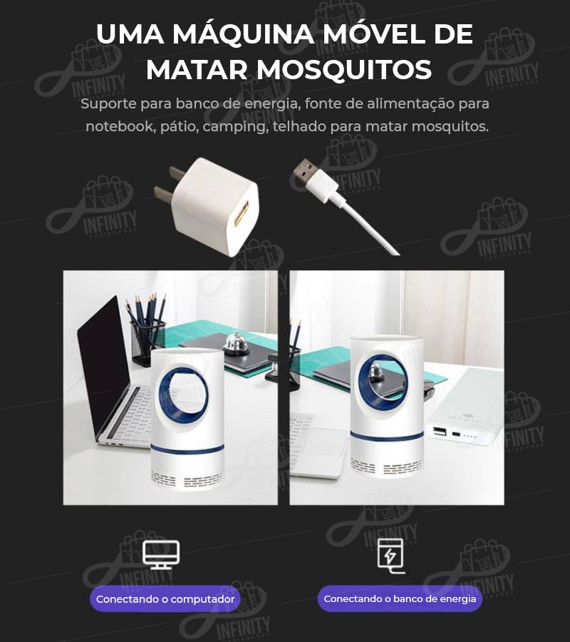 ABAJUR MATA MOSCA INIFINITY | Armadilha para Mosquito Elétrica USB
