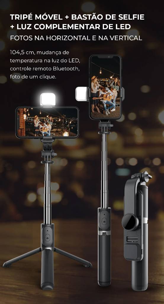 TRITOK INFINITY | Tripé Multi Funções 4 em 1 com Luz Integrada e Controle Remoto